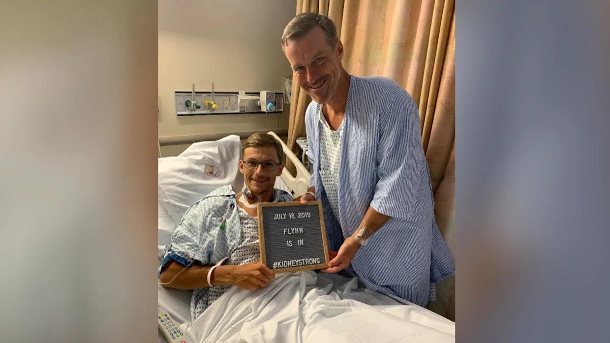 When Flynn was approaching his 50th birthday and feeling he needed to do more with his life, he discovered a plea for help on social media. A teacher at his children’s school had posted about her brother, 24-year-old Greg Dentice, who desperately needed a kidney transplant after a childhood kidney infection developed into kidney disease.