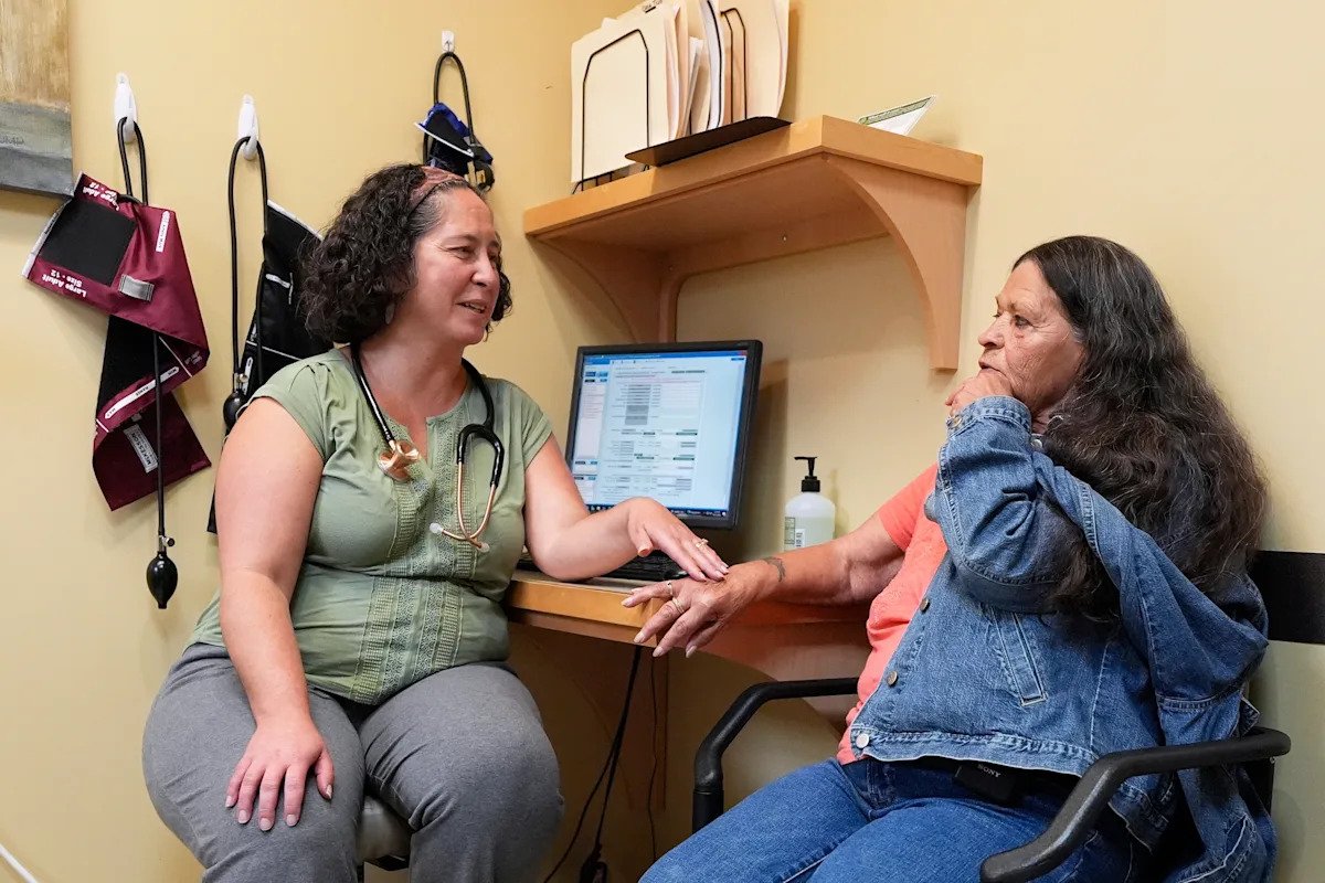 On the center’s last day, longtime patient Susan Bushby, a 70-year-old housekeeper, stopped by to check her blood pressure — and to get a hug from LaDuke. Bushby had come to rely on LaDuke’s comforting words over the years and admits she is worried about finding the same kind of reception when she goes to one of Ammonoosuc’s other centers.