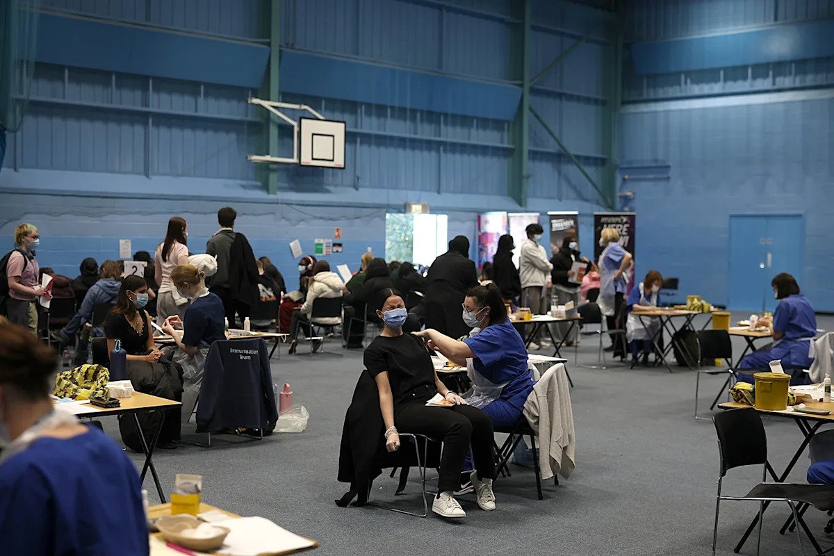 Dan Kitwood/Getty Images – PHOTO: A students receives the Meningitis B vaccine in the sports hall on the University of Kent campus on March 19, 2026 in Canterbury, England.