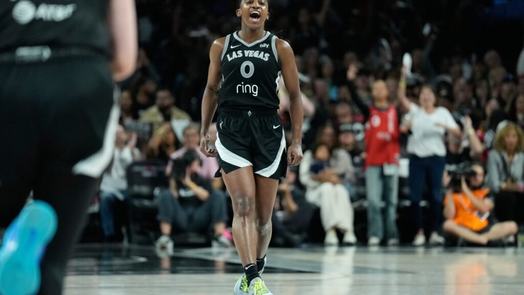 “We had a couple of play calls for her, but it was really her being really aggressive and in attack mode,” Aces coach Becky Hammon said. “I’m always spurring her on to be in attack mode. … When she hits the 3-ball and gets a couple to go down, it becomes difficult for her to be defended because she’s fast, she’s big, strong.”