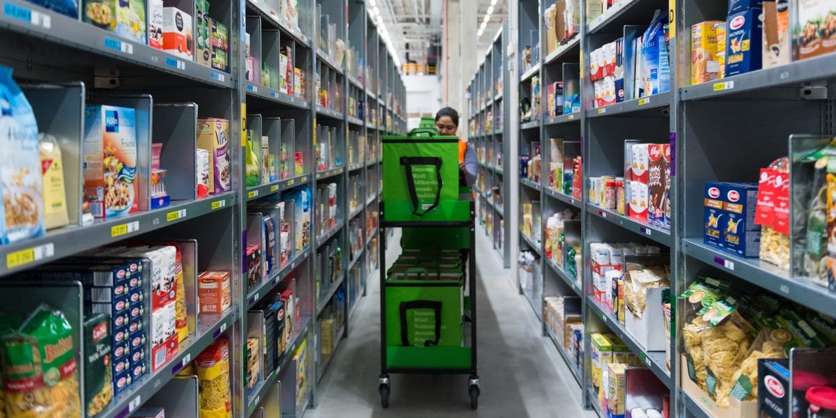 Despite surpassing Walmart in annual revenue last year, Amazon holds just 3% of the US grocery market, compared with Walmart’s 21%, according to Numerator. Walmart also has one key advantage in delivery, as the location of its many supercenters means it can reach 93% of households with same-day service. (The Amazon spokesperson said Numerator data underrepresents Amazon’s grocery share).