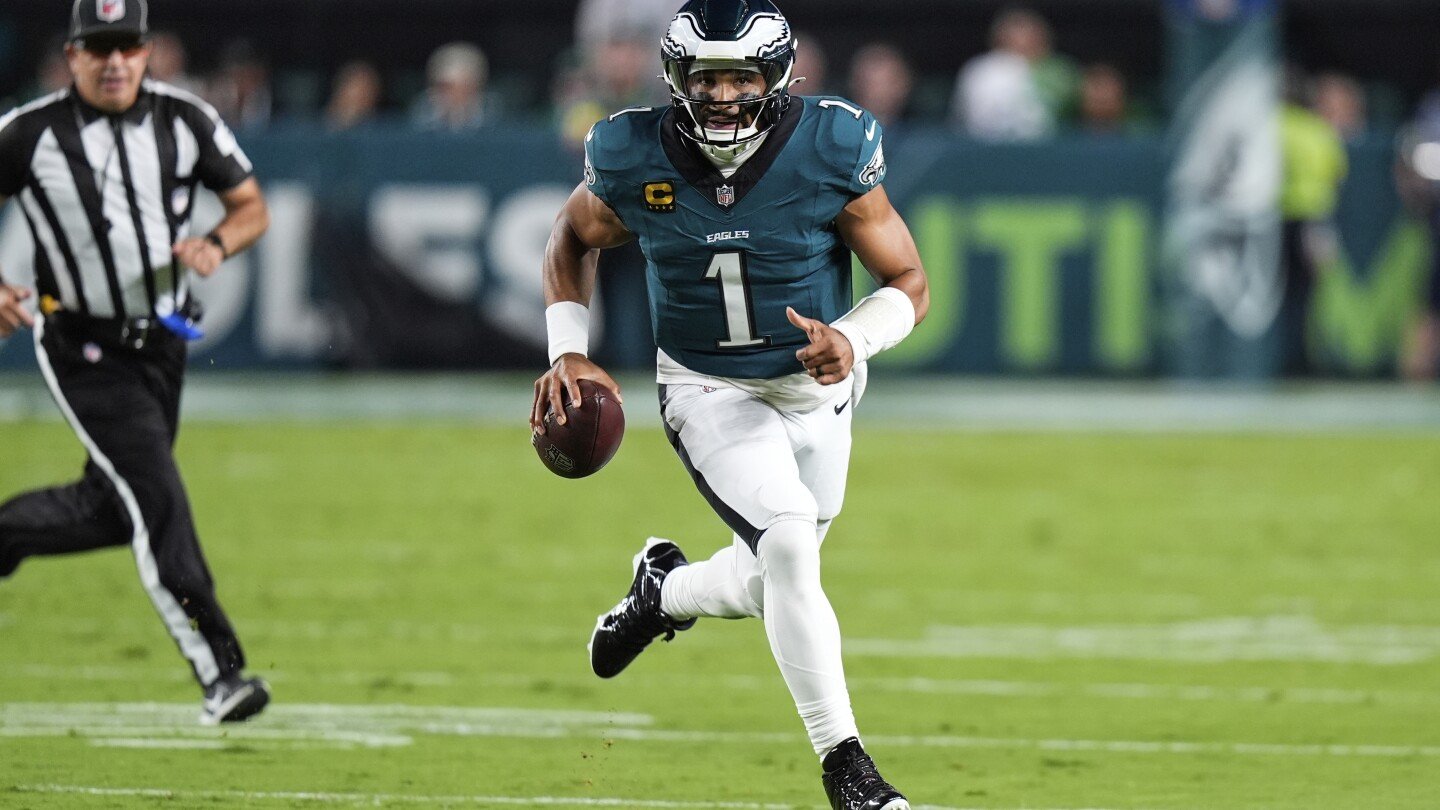 PHILADELPHIA (AP) — Jalen Hurts shrugged on a TD celebration and did his best to be like Mike.