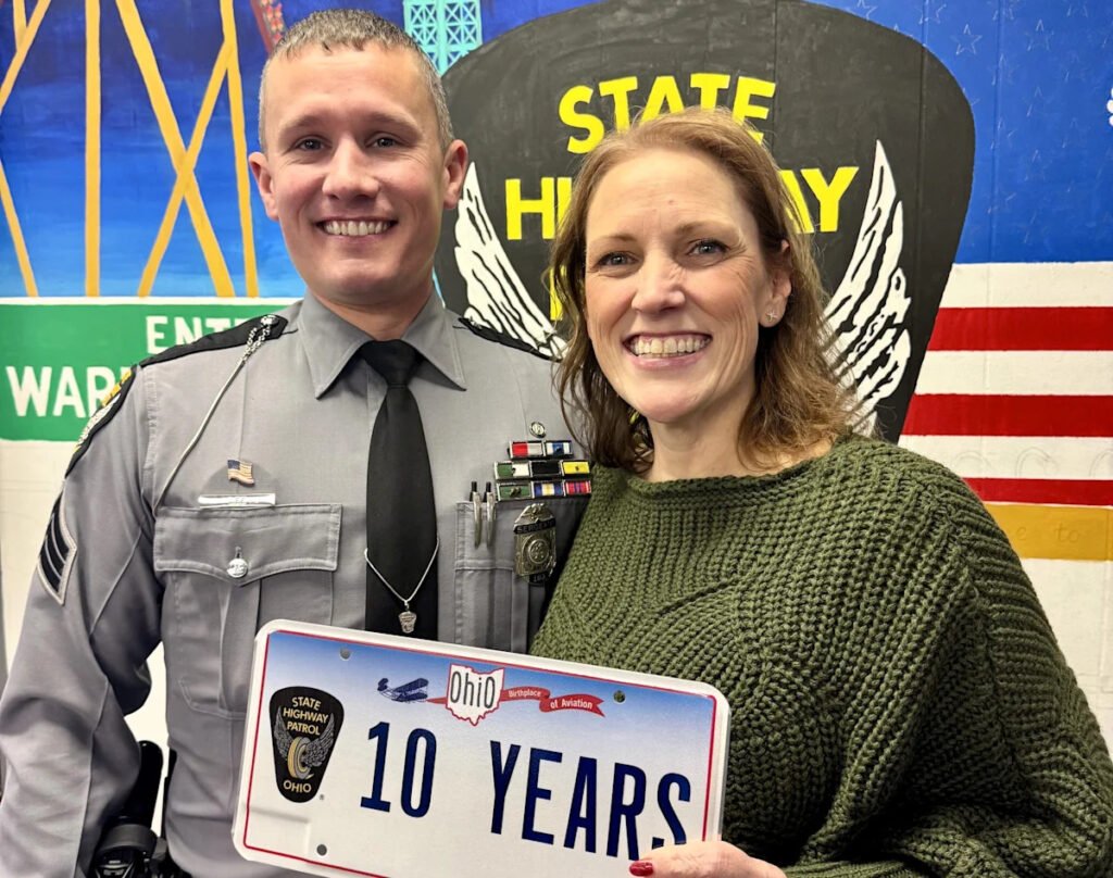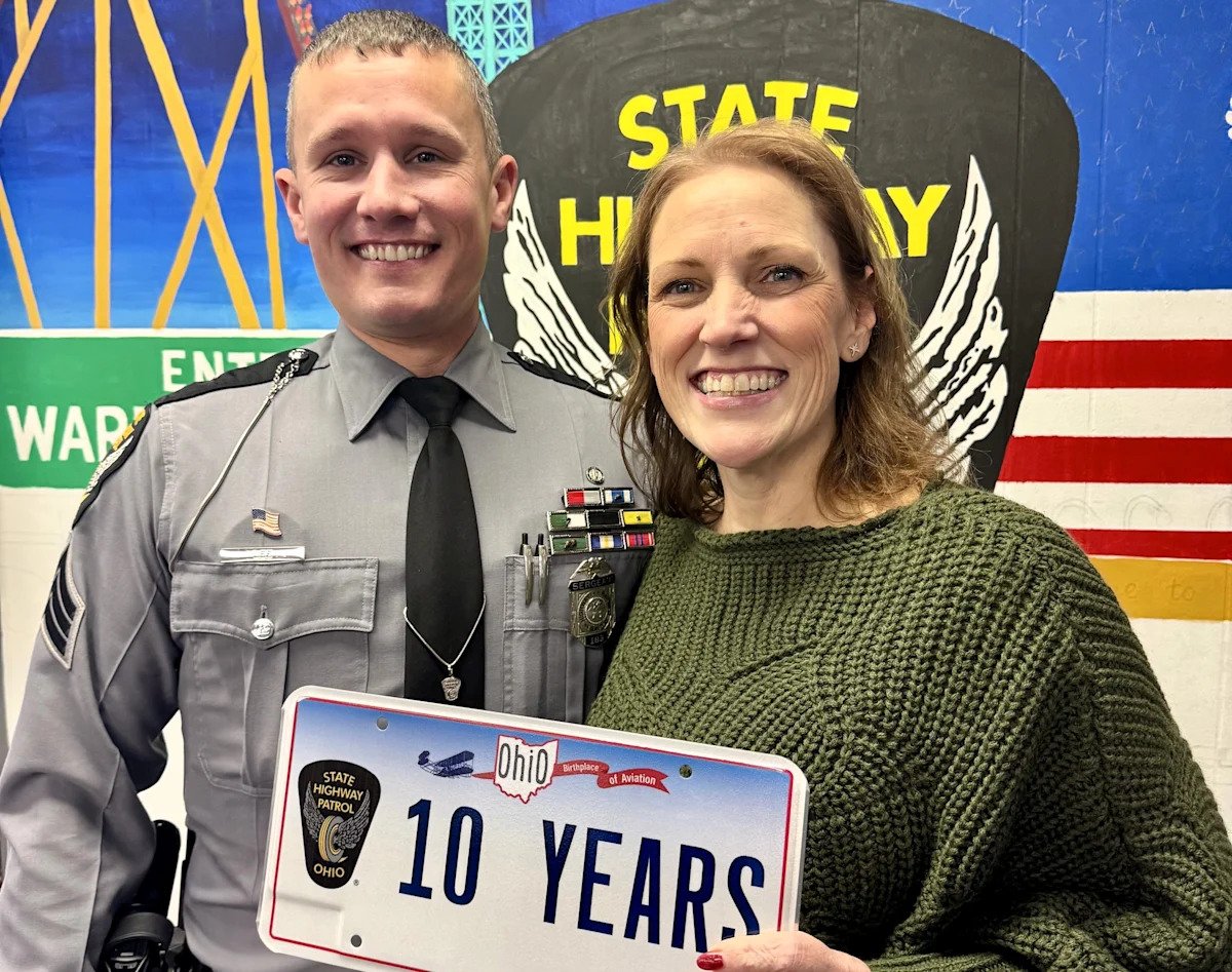 Last week, the Ohio State Highway Patrol awarded Slavens a medallion and a certificate that said Slaven’s “annual messages of gratitude, and willingness to share her story reflect hope, resilience, and the impact of responsible choices.”