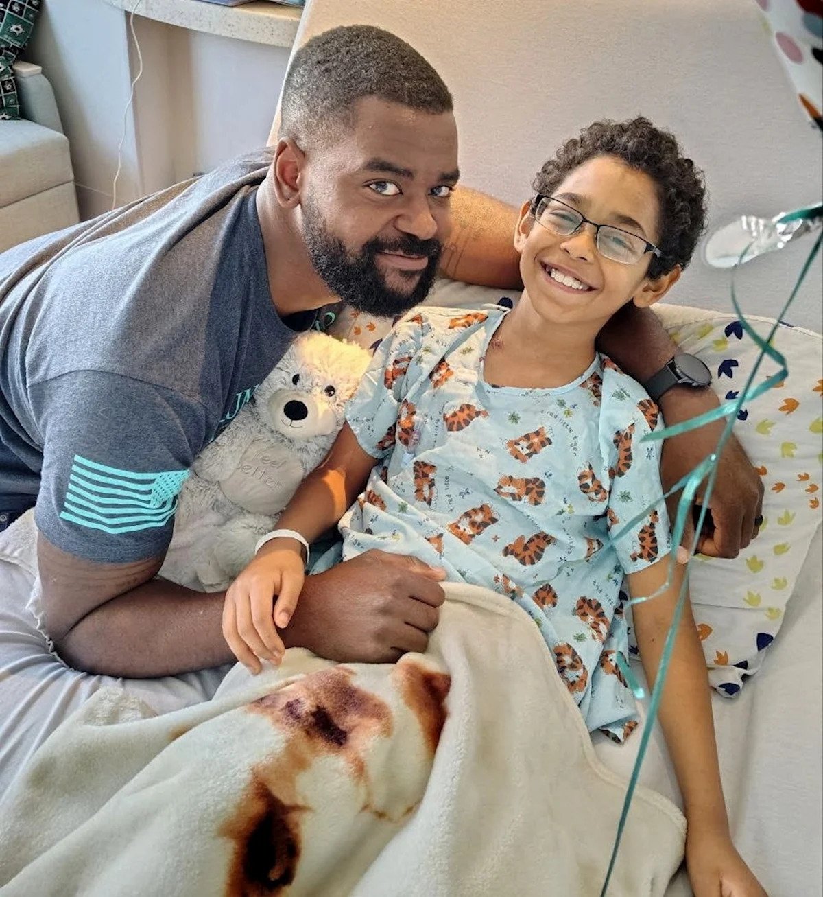 Texas Children’s Hospital – PHOTO: Spencer Tutt and his son Mason are spending Christmas at home together after both were recently in the hospital.