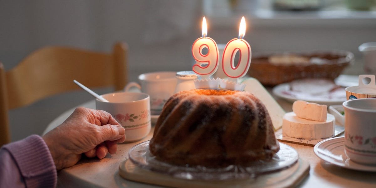 A cake with 90 years old birth candles.