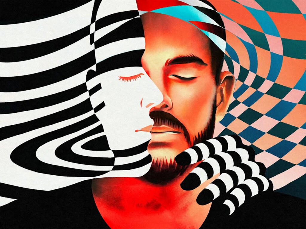 Tim found his first trip, in 2022, life-altering. It helped him let go of his feelings of shame about his sexuality and to heal the trauma from a sexual assault he had suffered years earlier. “It sounds trite, but I felt so connected to everything,” he recalls. “I felt this light burst out from me in the form of these rainbow bullets. They pushed the predator away. I felt bathed in this light and energy and power that was simply beyond my own agency, beyond my own personal narrative, and beyond my own body.”