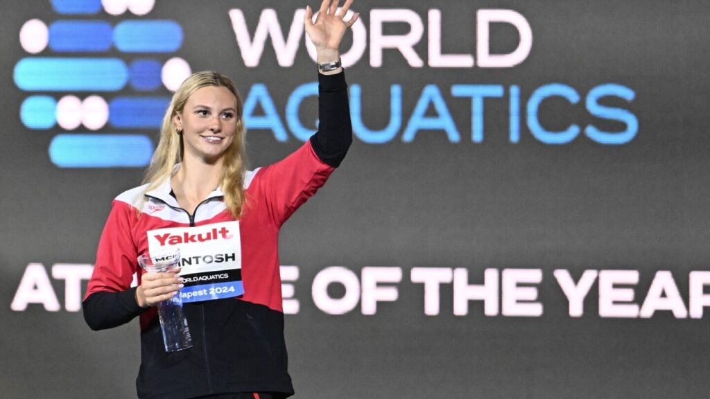 Summer McIntosh won three individual gold medals a year ago at the Olympics, the star in the Paris pool alongside France’s Léon Marchand.