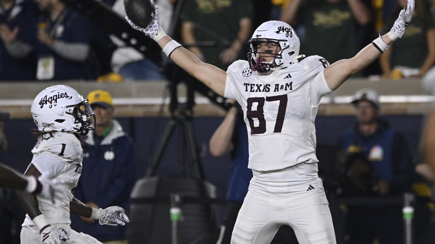 No. 16 Texas A&M beats No. 8 Notre Dame 41-40 on late TD strike