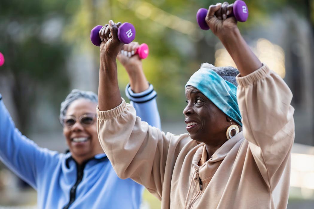The World Health Organization recommends that all adults, no matter their age, should aim for at least 150 minutes of cardio activities per week, and strength training twice a week. Older adults should also practice balance training through activities like tai chi, yoga or dance to prevent falls.