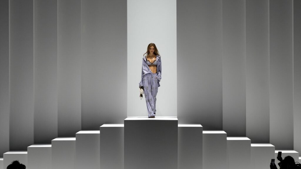 A model wears a creation part of the Ferragamo women’s Spring-Summer 2026 collection, that was presented in Milan, Italy, Saturday, Sept. 27, 2025. (AP Photo/Luca Bruno).