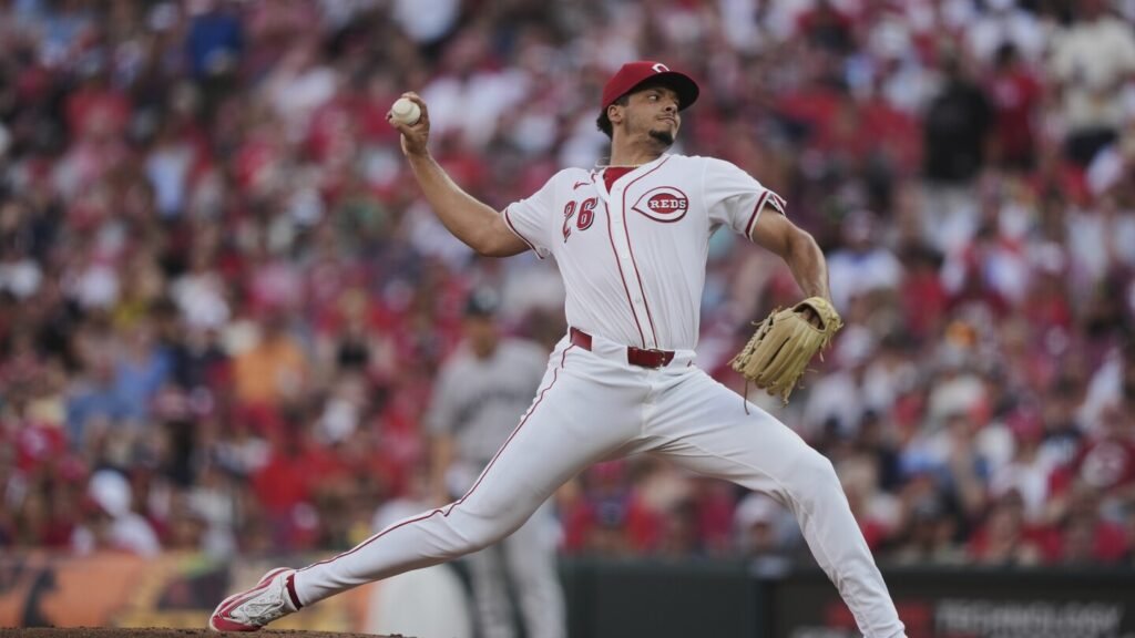 The right-hander struck out his first five batters before Jazz Chisholm Jr’s single. He gave up six hits and struck out eight, the seventh Cincinnati starter to have at least that many in his first career start.
