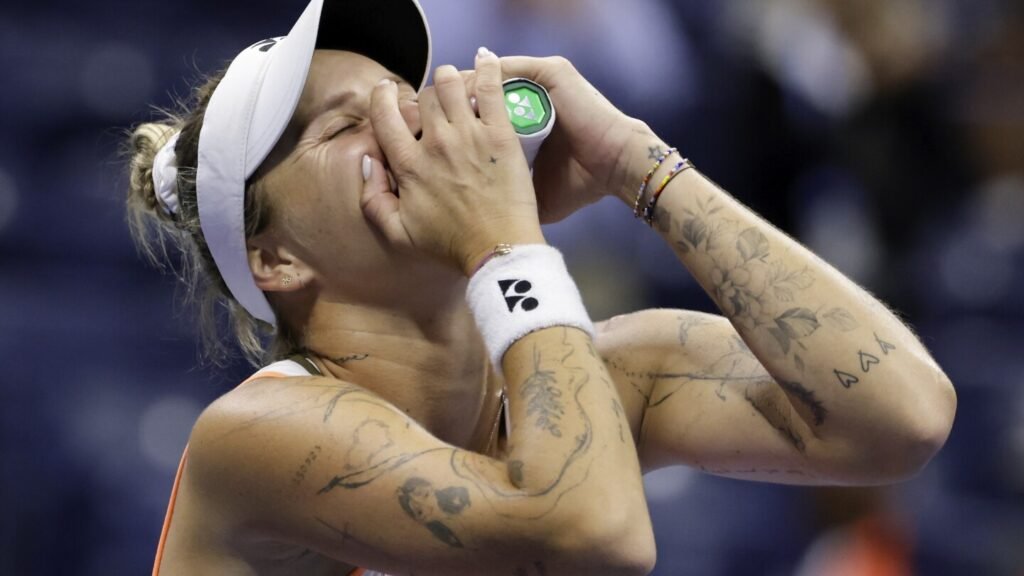 NEW YORK (AP) — Defending champion Aryna Sabalenka returned to the U.S. Open semifinals without hitting a ball on Tuesday night because the woman she was supposed to face in the quarterfinals, 2023 Wimbledon champion Marketa Vondrousova, pulled out of their match with an injured knee.