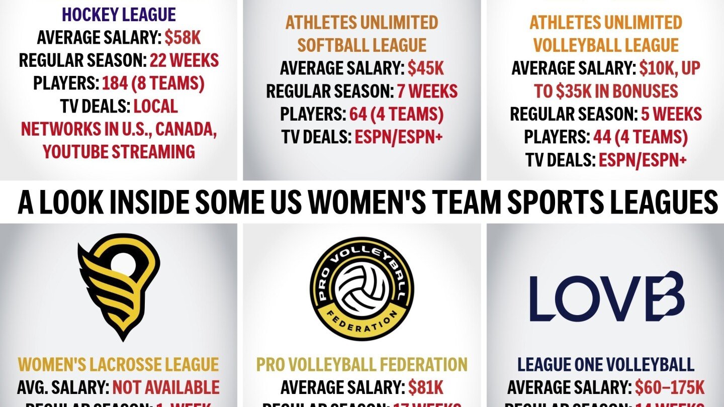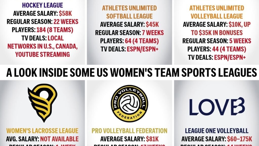 Among the recent women’s pro circuit additions are the PWHL, which wrapped up its second season in May, and soccer’s Gainbridge Super League, which debuted last August. Volleyball entered the spotlight in 2024 with the launch of the Professional Volleyball Federation and League One Volleyball.