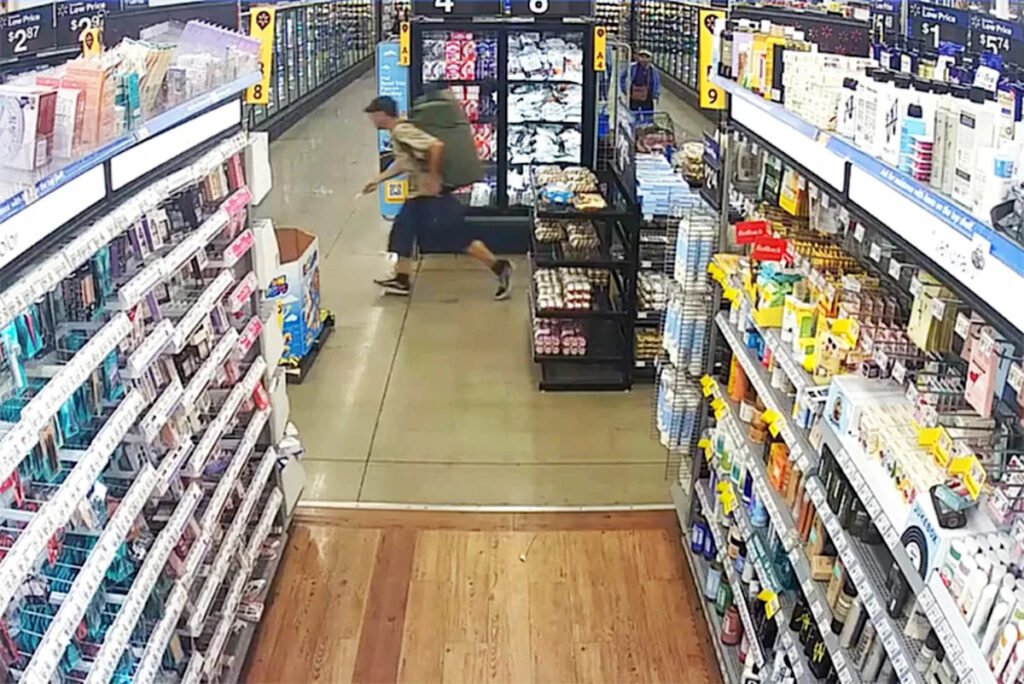 A man carries a knife while running inside a Walmart near Traverse City, Mich., on July 26. (Grand Traverse County Sheriff’s Office)
