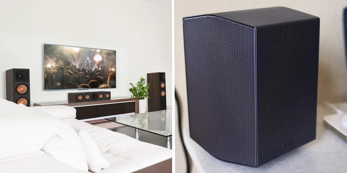 The best surround sound systems use dedicated rear or “satellite” speakers to create a cinematic soundstage that pulls you right into your favorite movies, shows, and games. If you’re looking for a great all-around option, I recommend the Samsung Q990F. This convenient soundbar package includes two satellite speakers and a wireless subwoofer, delivering room-filling sound right out of the box. But if you have the space and budget for something larger, I suggest piecing together a system using Klipsch Reference Premiere series speakers, which offer powerful audio that’s a clear step above smaller options. You can mix and match models to build the perfect setup for your room, but you’ll need to buy an AV receiver separately.