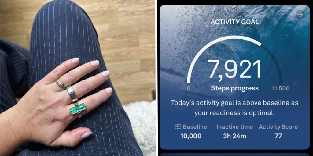 The Oura Ring 4 felt bulky at first, but within a week I barely noticed it. It stacks decently with other rings, stays secure during sweaty workouts, and doesn’t interfere with grip — except during tight-grip lifts like deadlifts, where it can chafe.