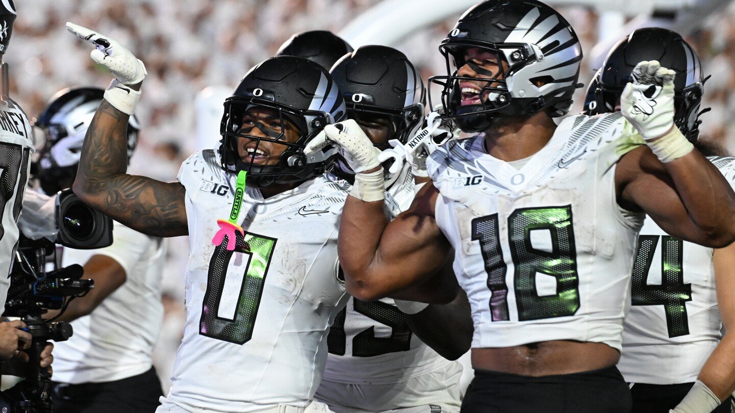 Oregon’s two-overtime win at Penn State earned the Ducks 16 first-place votes, 15 more than last week, and gave them their highest ranking since they were No. 1 for two months last year.
