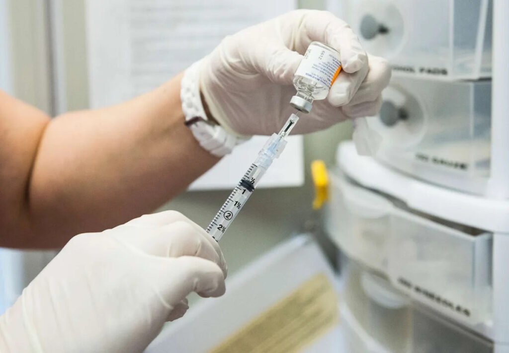 Brent Lewis/The Denver Post via Getty Images, FILE – PHOTO: In this Feb. 7, 2015, file photo, the annual flu vaccine is shown in Aurora, Colo.
